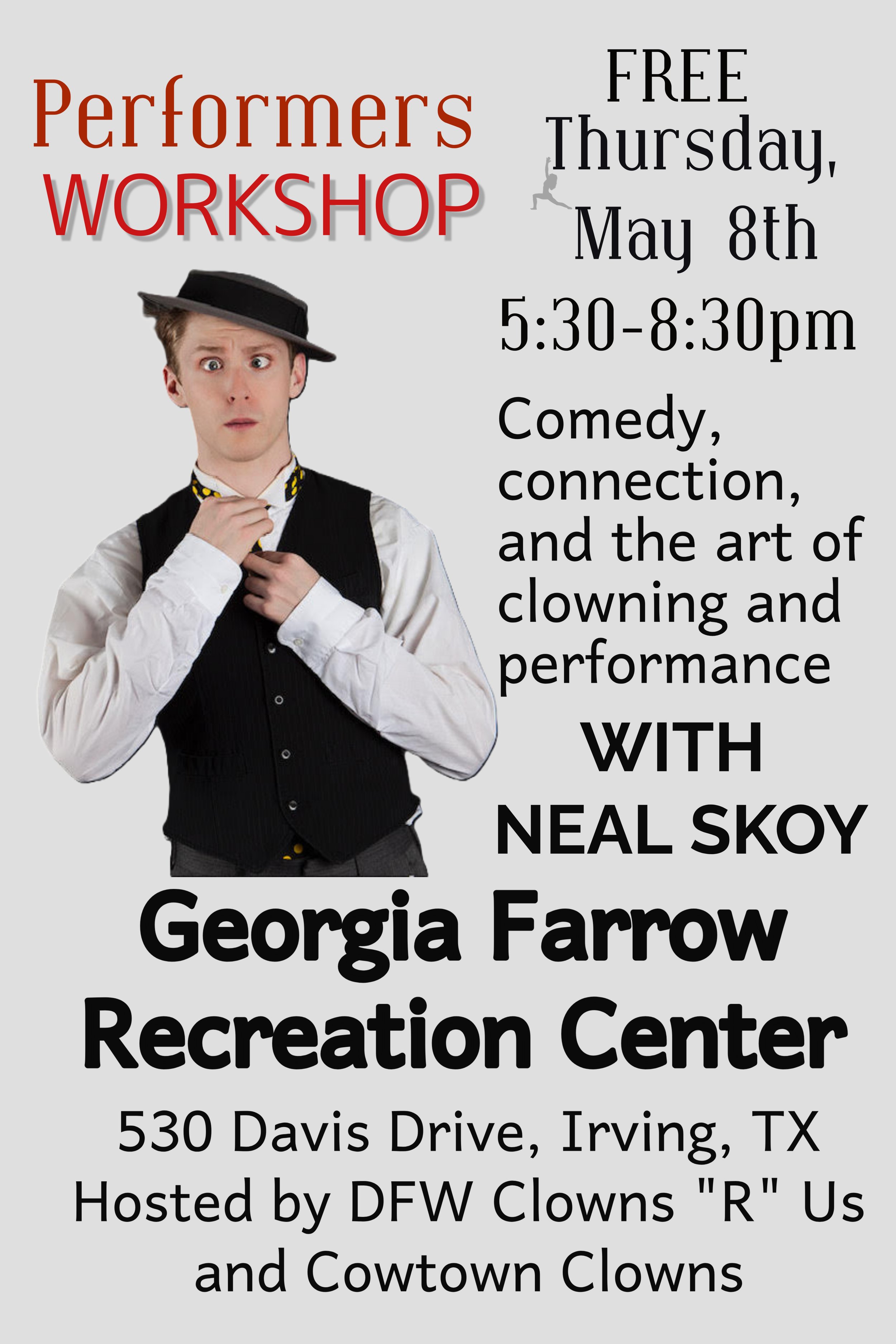 Coming up at our joint alley meeting on May 8, the world famous Neal Skoy will be teaching a performing workshop! Details are below. We hope to see you there!